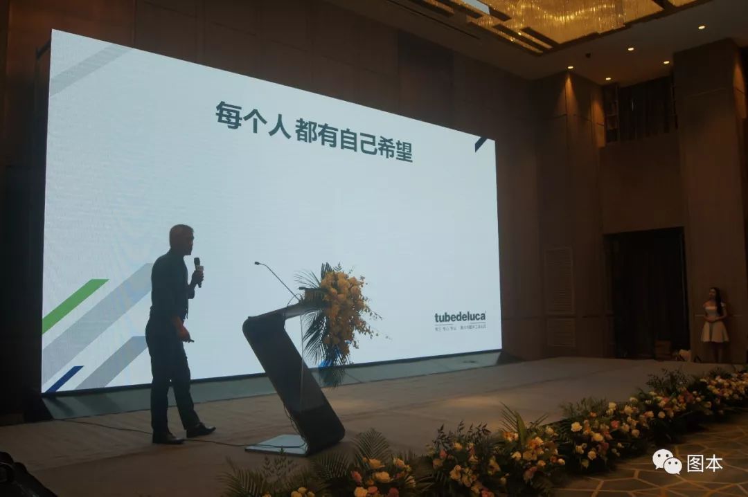 会议开始,位于图本意大利总部的安德烈和米伽勒先生亲临会场,为图本2018年度会议开幕致辞。