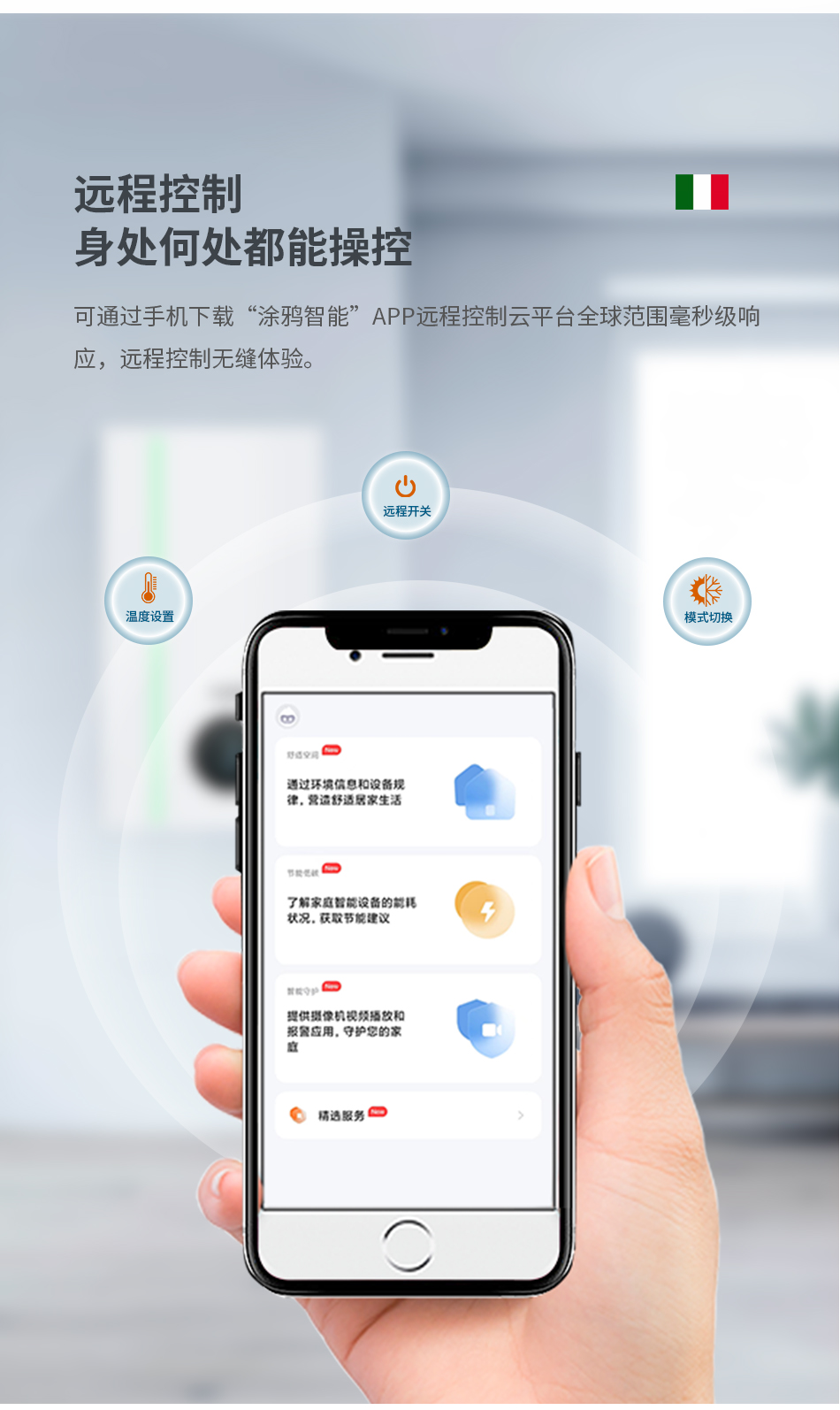 Tubedeluca Hajdu系列壁挂炉采用WIFI智能控制技术,实现STA模式智能终端与设备无线通讯功能。勒夫R系列壁挂炉内置智能远程控制模块,让业主随时随地查看及控制壁挂炉运行状态,带您开启智能新生活。